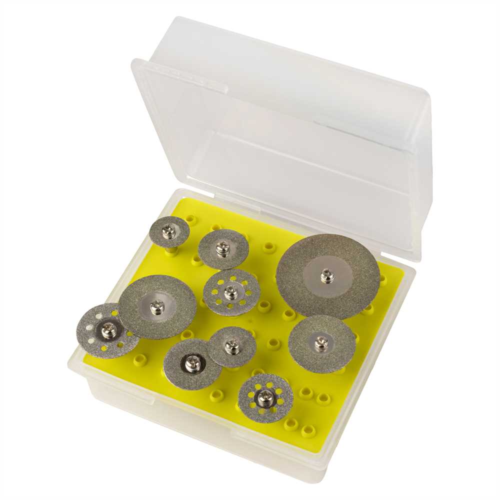 Режущая кромка содержит мелкие частицы, которые равномерно распределены по поверхности. Наборы алмазных дисков для работы гравировальной машинкой, предназначены для отрезных и зачистных работ.