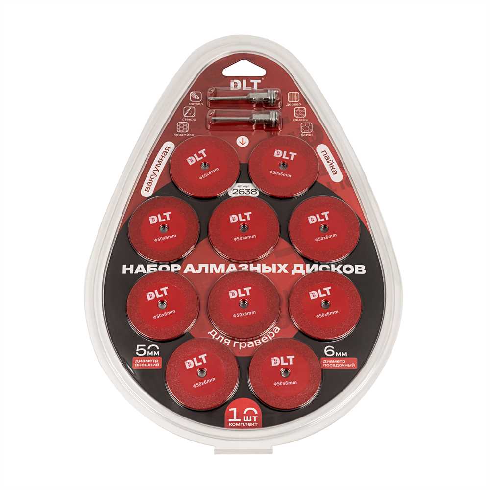 Набор алмазных дисков для гравера DLT, вакуумная пайка, 10 шт, 50мм, концевик 6мм
