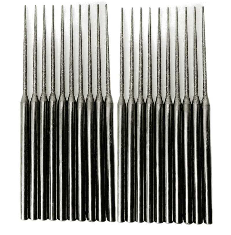 Набор алмазных фрез (иголок) 1мм для гравировальной машинки, применяются для проведения высокоточной обработки цветных металлов, стекла, керамики, керамогранита, пластика и прочих материалов. У всех фрез хвостовик 3 мм, что позволяет использовать их не только в бормашинках, но и в гравировальных аппаратах. Равномерное нанесение алмазного порошка на поверхность рабочей части обеспечивает качественную и аккуратную обработку материала без сколов и заусенцев. Нанесение из высококачественных синтетических алмазов. Диаметр в 1мм позволяет обрабатывать самые сложные участки деталей разной конфигурации.