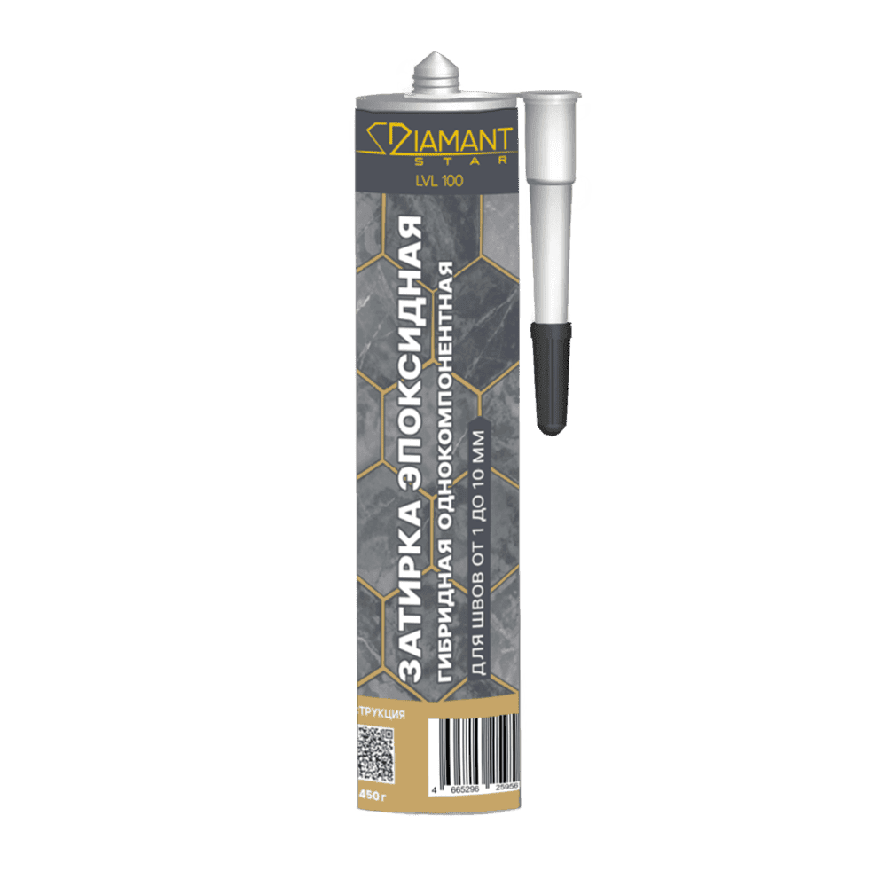 Эпоксидная однокомпонентная гибридная затирка Diamant Star LVL100 легко наносится при помощи пистолета для герметика и легко очищается мыльной водой в течении 60 минут после нанесения состава в шов