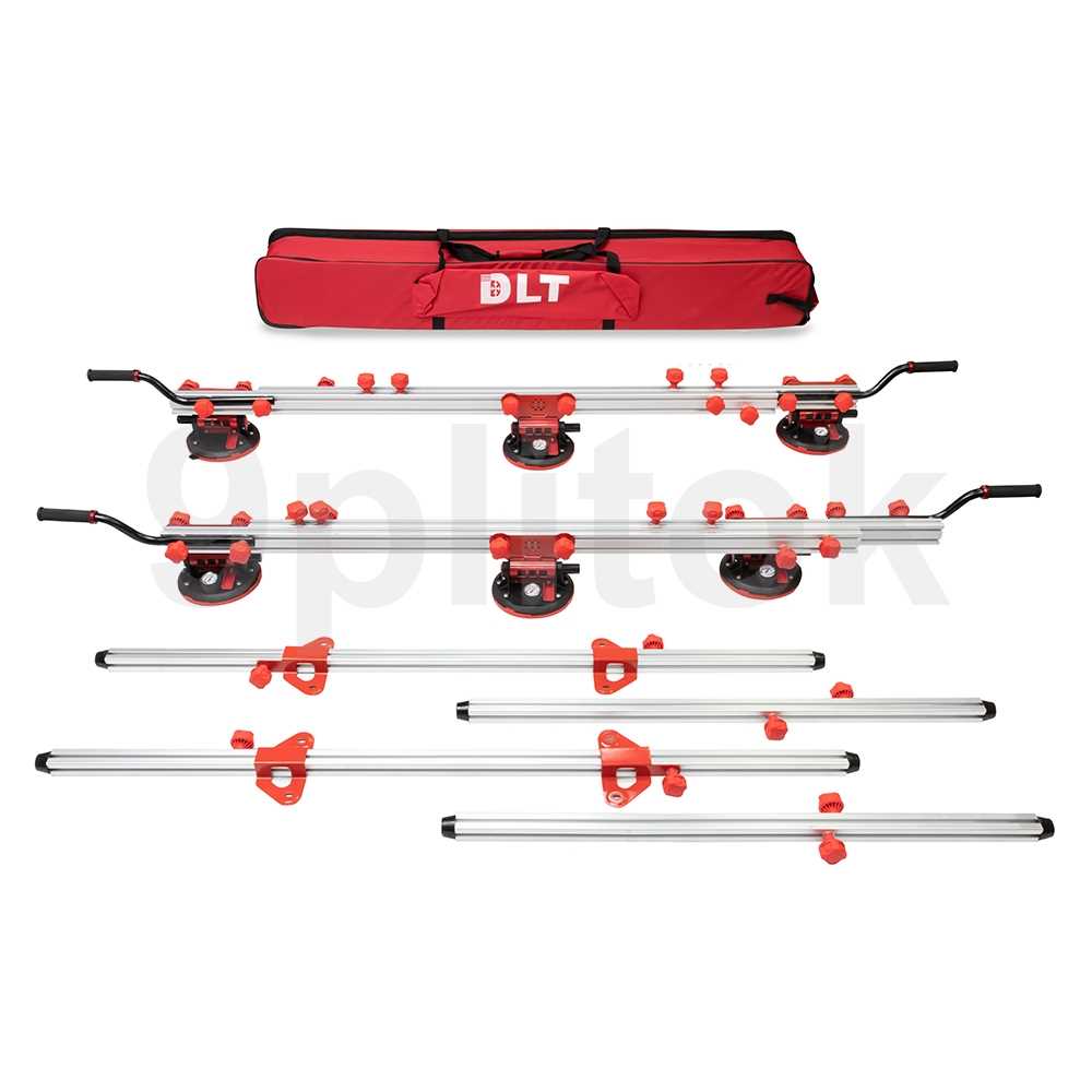 Система переноски крупноформатного керамогранита DLT специально разработана для подъёма, перемещения и укладки крупноформатной плитки, максимальной длиной до 320см, шириной до 160см и весом до 500кг. В комплекте с переноской поставляется качественная сумка-кейс на колесиках для удобного хранения и транспортировки.